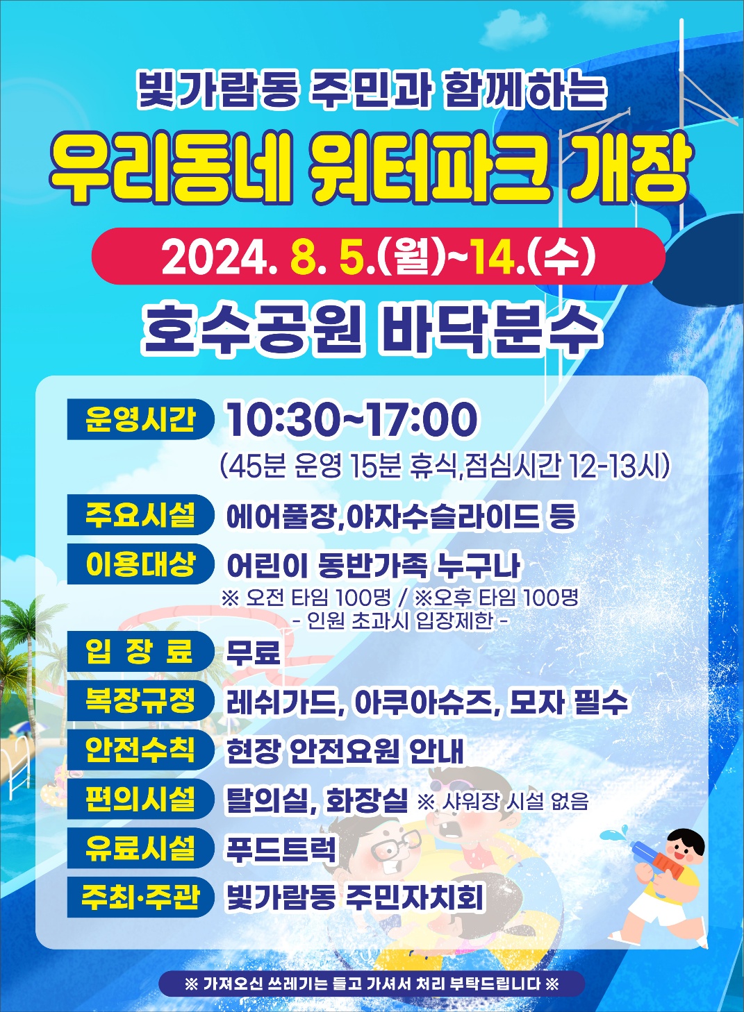 빛가람동 주민자치회에서 「우리동네 워터파크」개최합니다!
